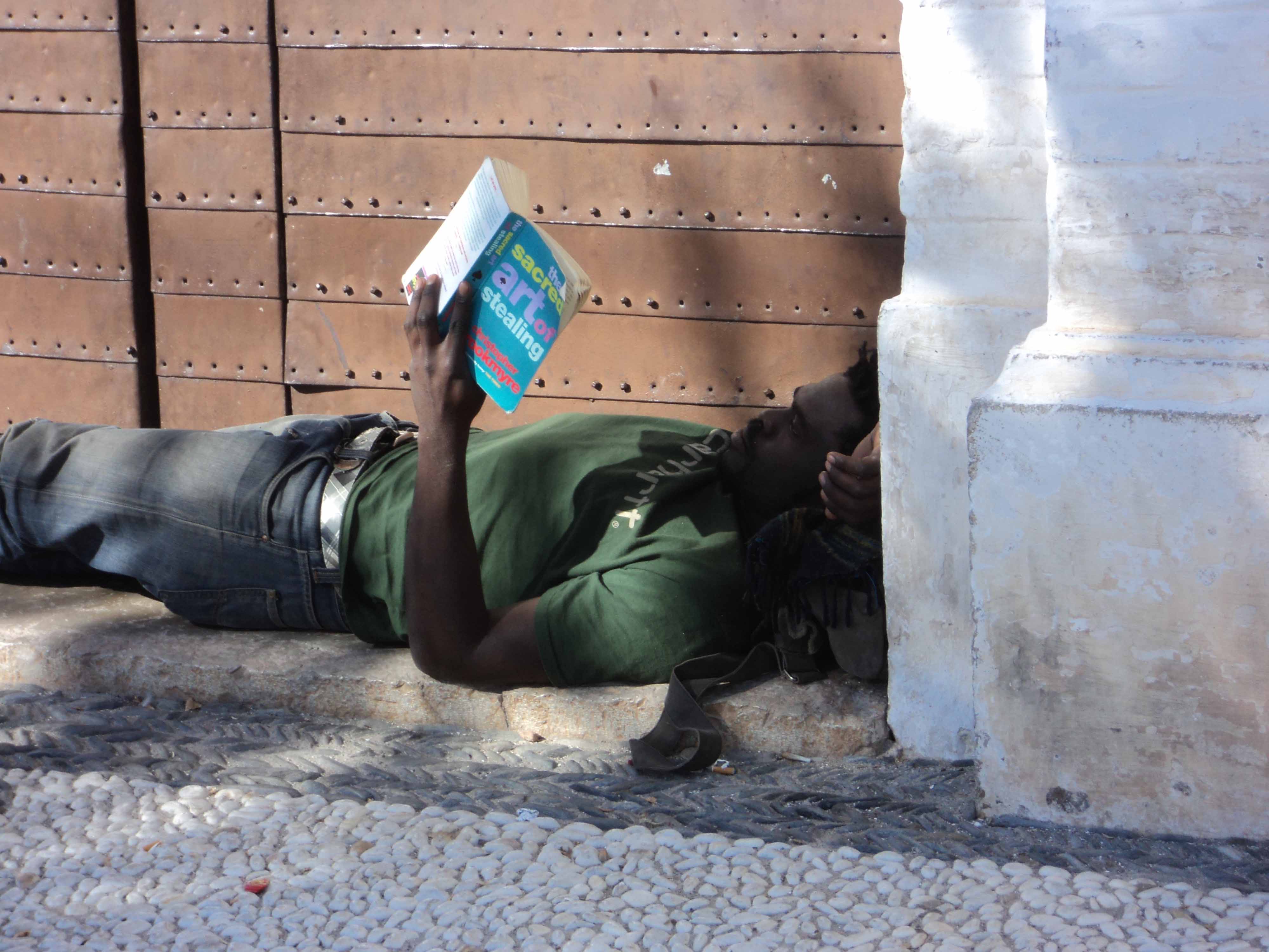 Check out the book he is reading, this is from Granada in Spain